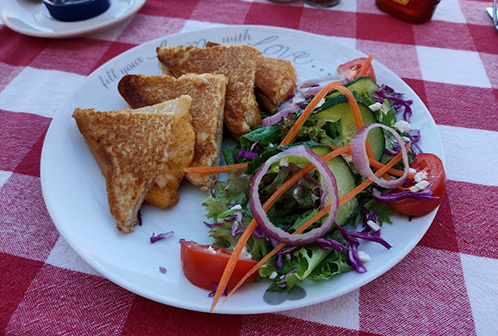 This traditional Bistro offers a selection of breakfast and lunch since they serve all their dishes, any time of the day. You can expect normal sandwiches, tramezzinis or you can enjoy traditional South African food like delicious Bobotie or ‘Afval’. If that is not your cup of tea, there are still a few other options from which you can choose. The atmosphere is relaxed and family-friendly with a cozy fireplace in winter and a play park for the kids to get rid of some energy.